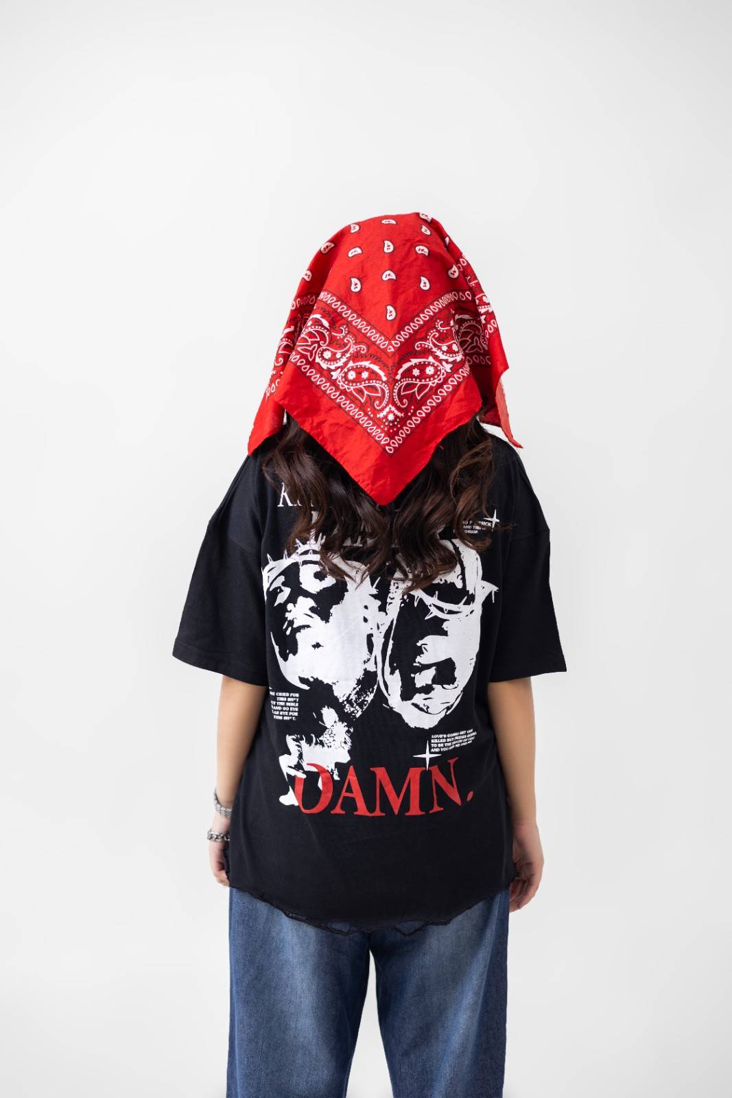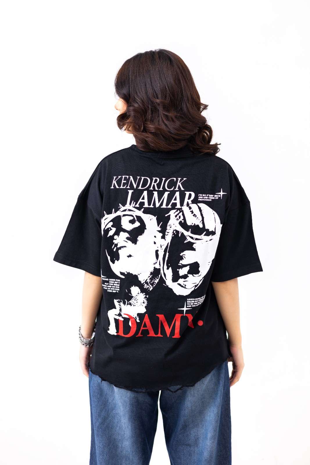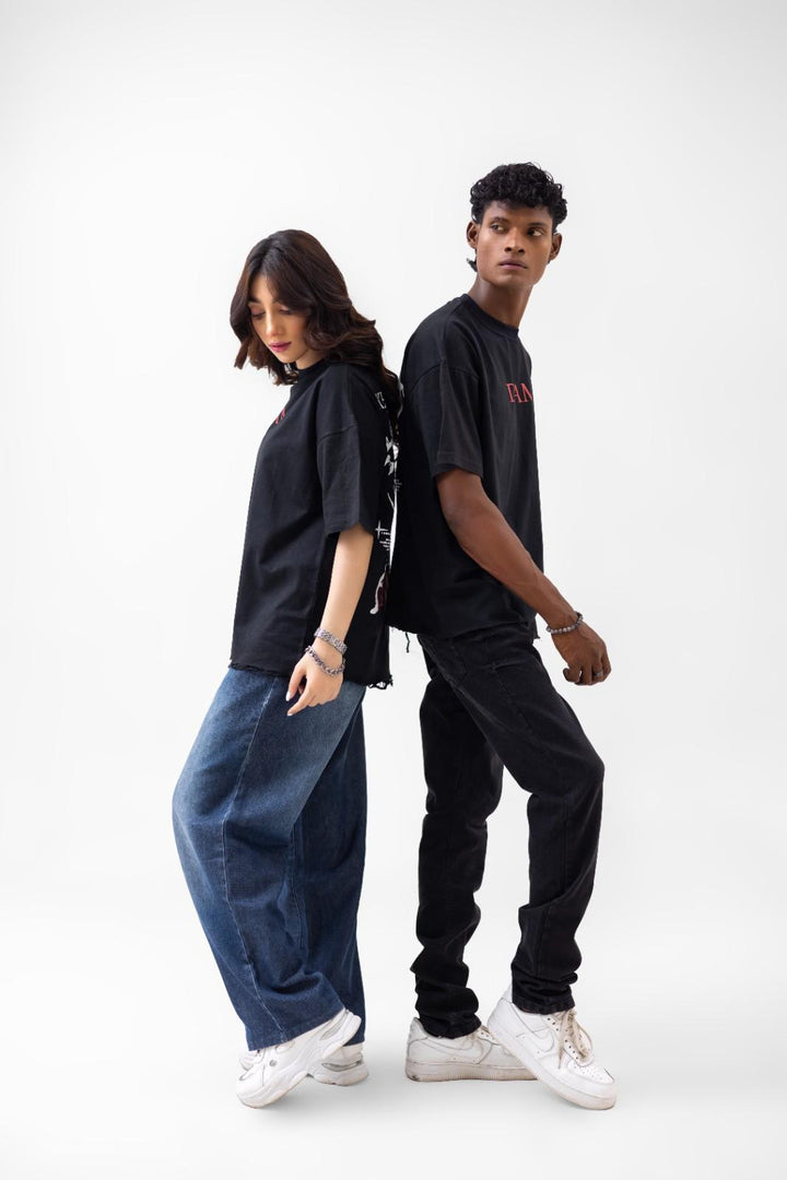Unleash your rebellious spirit with the "Riot Ink" tee. This oversized black t-shirt features a striking white and re...